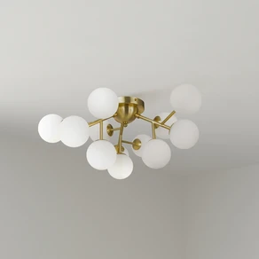 There are also two variants of modern ceiling lights in brass and gold: Lights with fixed LEDs and those with replaceable light sources.