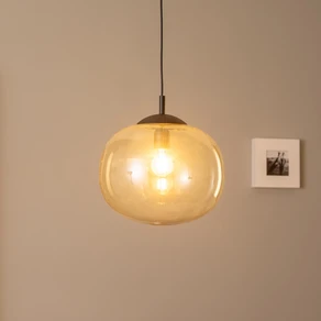 So trendy that you will find a selection of pendant lights with glass shades that can compete with all other materials. Because glass is flexible. You can shape it into ever new forms, bellied, conical, flat, structured like a honeycomb, wavy or mirror-smooth. And combine with other materials such as cork, wood, textile and of course metal. Some luminaire designers are stylistically moving towards a vintage\ look with copper colours. Others design colourful glass shades in retro\ style. And still others conjure up a rustic country house style light with smoked glass.