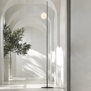 Particularly in open-plan layouts or loft-style rooms, a modern floor lamp can serve as a connecting element between the kitchen, living and dining areas. Its discreet design emphasises the architectural clarity and allows flexible placement, for example as a complement to restrained table lighting or as a focussed light object next to sideboards or plants.