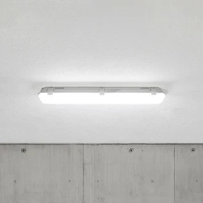 Moisture-proof luminaires are available in various sizes, e.g. 60, 120, 150 or 180 cm. In addition to models for mounting on the ceiling or wall, there are also models that are attached like a pendant light.