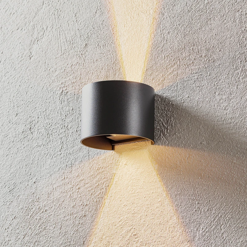 The special feature of this outdoor wall lamp Scotty is that the light output can be controlled up and down through integrated flaps. The light can be emitted either narrowly or broadly from the light source, which can be adjusted according to personal feelings and circumstances.