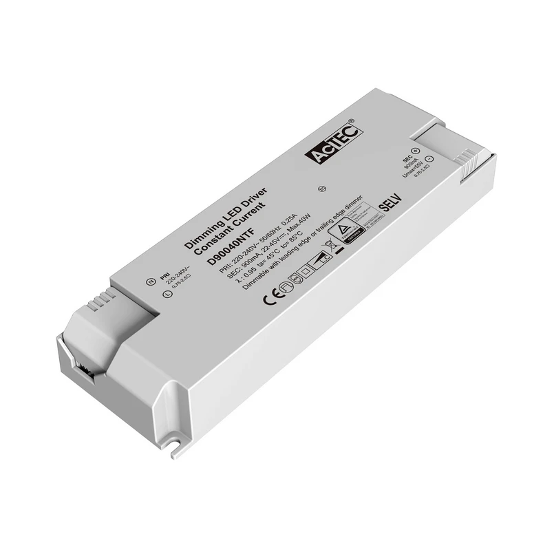 Constant-current LED driver, TRIAC dimmable This constant-current TRIAC driver is suitable for supplying LEDs with a total output of up to 40 W. - SELV isolation - Protection against short circuit, open circuit, overheating and overload - Ambient temperature during operation: - 20 to 45 °C