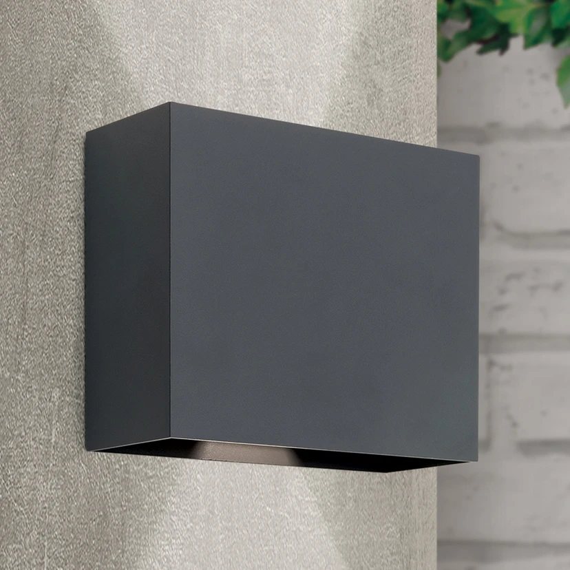 This cuboid-shaped LED wall light is designed for outdoor use and is shown to particularly good advantage in a modern environment. The design dispenses with extraordinary decoration and instead focuses on a contemporary and puristic style. This enables this light to fit optimally into its surroundings without appearing obtrusive.