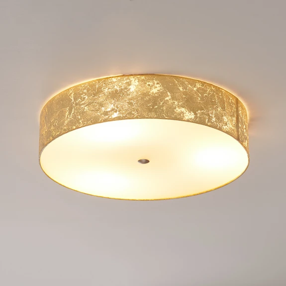 The Alea Loop ceiling light is an elegant eye-catcher. The round light has an attractive, high-quality lampshade with a gold leaf coating. It provides a glossy accent and looks very elegant. The glass cover is made of satin white acrylic glass. It ensures glare-free and soothing light. The beautiful ceiling light is lit by three E27 bulbs. Alea Loop can be used in many ways. It is ideal for use in in living rooms and corridors. It can also illuminate a spacious hall effectively. With its pretty gold colour, it also looks great in a bedroom.