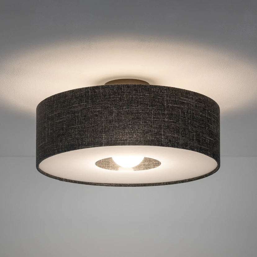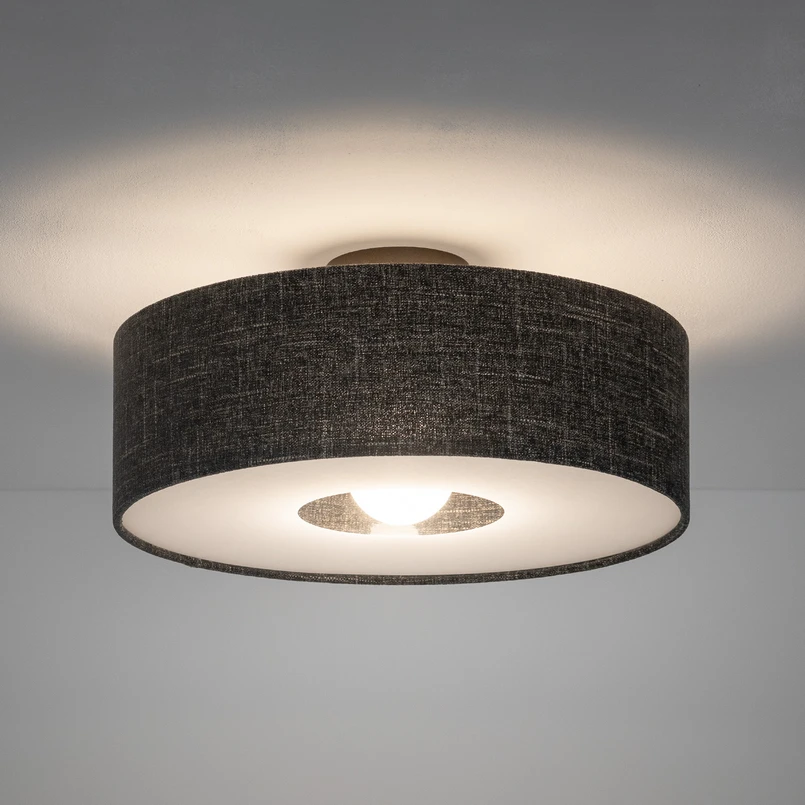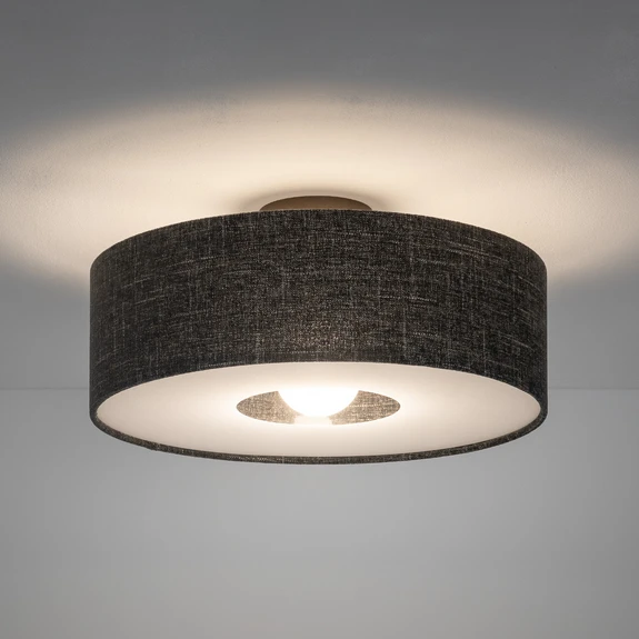 The Amarela M ceiling light combines modern design with a harmonious combination of textile and steel materials. The black melange lampshade gives the model a timeless aesthetic that blends into various living areas such as living rooms, bedrooms or hallways. Manufactured in Europe, the light impresses with its high-quality workmanship and adds stylish accents to any room.