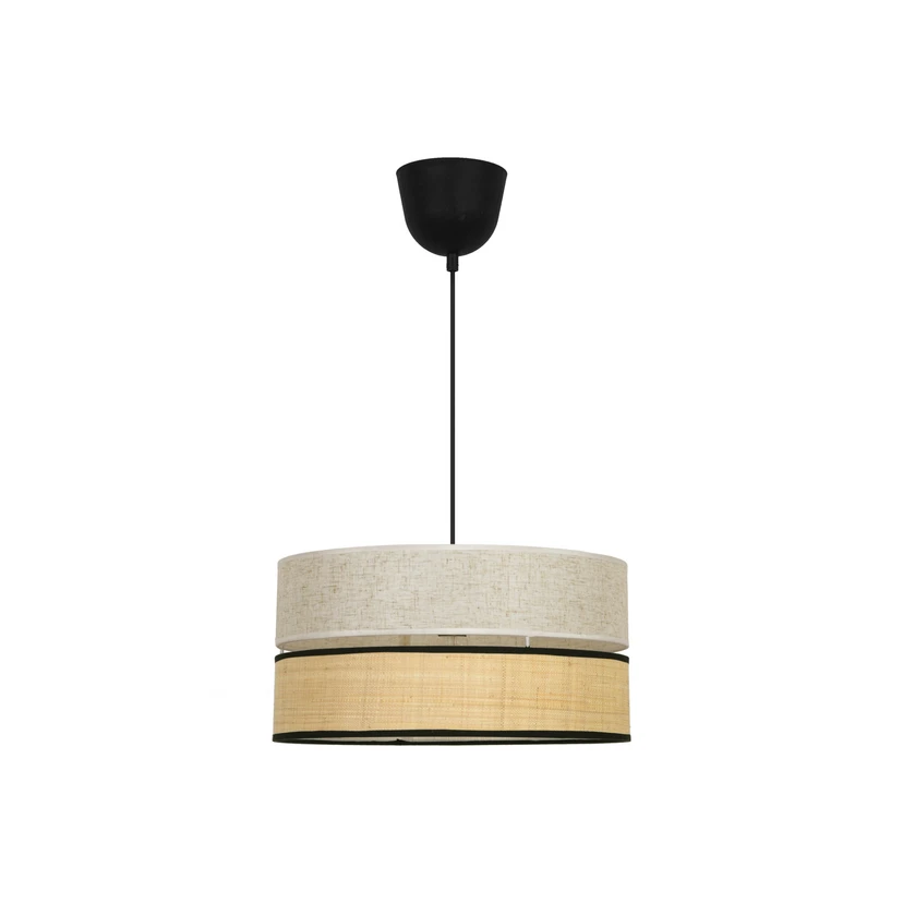 Andaman pendant light with two-coloured fabric shade The fabric shade of the Andaman pendant light, which is part natural colour and part light brown, spreads a natural Flair in the room and gives the light it emits a cosy Note. The colour combination is complemented in a modern way by the black suspension system - Externally dimmable