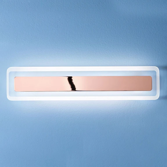 The metal body is covered with a copper persuasion produced in a galvanizing process, which gives Antille a noble, warm appearance. This is also supported by the warm white LEDs, which provide pleasant lighting, especially in cosy, modern living rooms. The glass diffuser with sandblasted outer area harmoniously follows the rounded rectangular shape of the metal body.