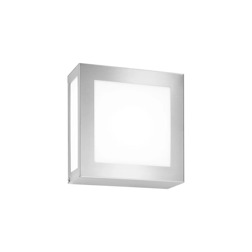 Aqua Legendo Mini is a square outdoor wall lamp made of stainless steel with an opal glass insert, whose light is emitted from the sides and front, creating a beautiful play of light on the façade while illuminating the area in front of the light. Depending on the bulb selected, this outdoor wall lamp can also be used to achieve energy-saving lighting when modern LED bulbs are used. Conventional traditional light bulbs up to 60 W or compact fluorescent bulbs are also possible.
