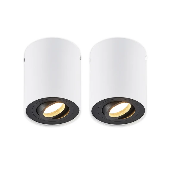 Cylindrical GU10 downlight Jolina with tilting reflector in a practical set of 2 The Jolina ceiling light scores points with its practical design, which proves advantageous in everyday life and in living room design. The cylindrical housing has a white finish that can be integrated into almost any interior. This simple light source can also be used in the commercial sector, as the spotlight can be tilted from side to side to highlight specific areas of the room. If you choose a dimmable bulb, the brightness of this downlight can be adjusted using a standard wall dimmer (dimmer not included) - supplied in a set of two