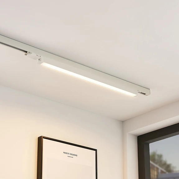 White Harlow LED linear luminaire for use on a three-circuit track lighting system Harlow can be used wherever a three-circuit track lighting system is installed and is a versatile light source with a narrow, elongated shape and LEDs covered with a white plastic diffuser for the most uniform light emission possible. The LED linear luminaire with its bright, efficient light is not only suitable for private areas, but can also be used anywhere in commercial environments and provides reliable lighting, with the light source remaining discreetly in the background. The white surface design also speaks in favour of the almost universal use of this light source. The track system to which the Harlow linear luminaire is attached can also be fitted with other, different types of light, as this is precisely the advantage of a track system: it allows you to implement a customised lighting concept and meet all conditions and requirements on site - UGR 29.3 - SDCM < 4
