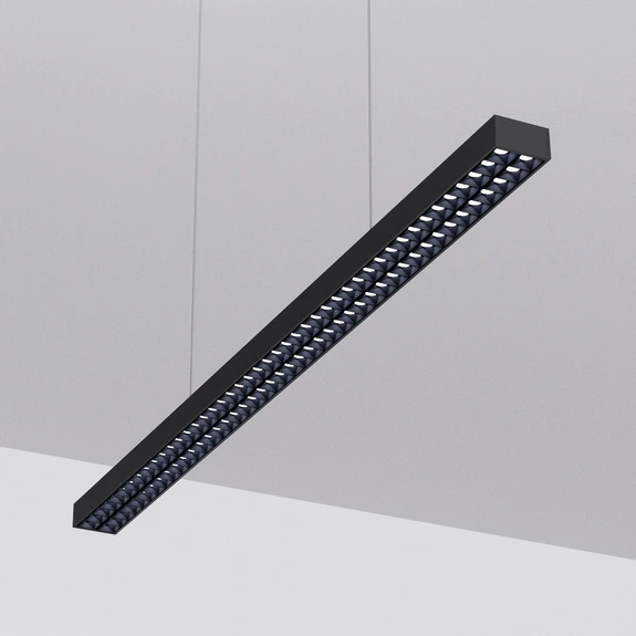 Elongated Jolinda LED hanging light for lighting office workstations Jolinda provides direct-indirect light so that the light image appears as natural as possible and you can concentrate on your work for long periods of time. The downward light is particularly low-glare, so that the light has a pleasant effect and is barely noticeable. The LED office pendant light achieves exceptionally good brightness in the office, while consuming comparatively little power thanks to LED technology. The linear design of the hanging light looks functional and does not distract from the essentials, but is always a stylish but discreet addition to modern office furnishings. The surface is painted silver (RAL 9006) - flicker-free light - UGR < 6