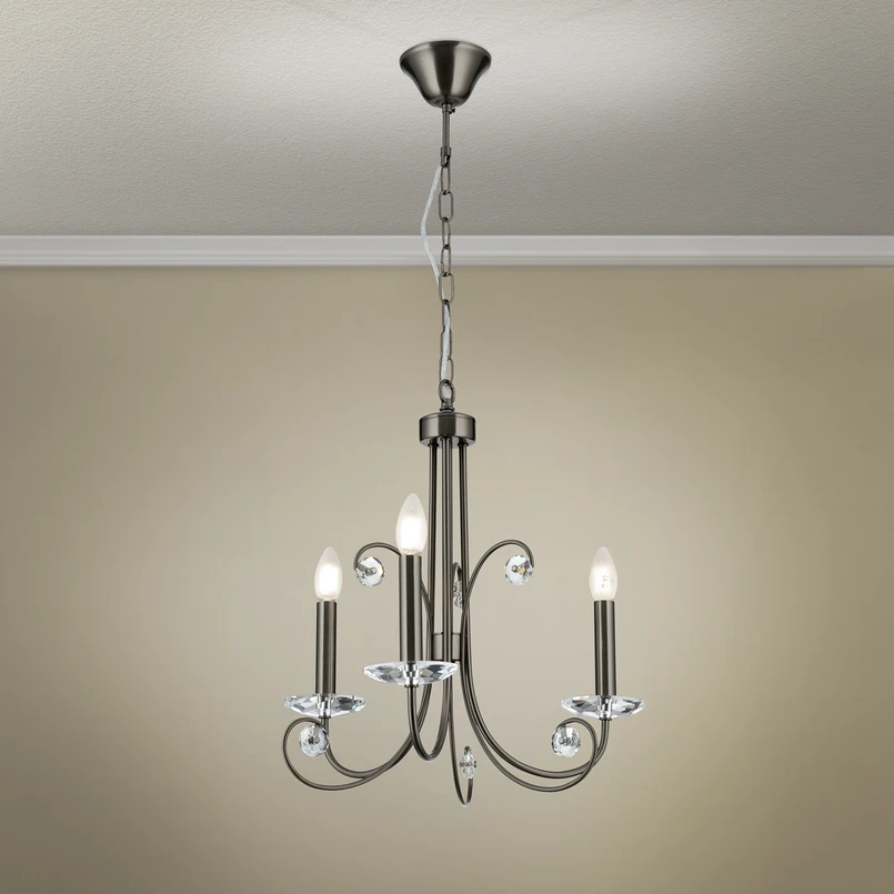 Ariane chandelier, nickel-coloured, Ø 50 cm, crystal, 3-bulb.