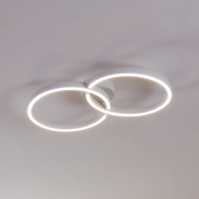 Armandolo LED ceiling lamp for varied lighting conditions The Armandolo LED ceiling lamp represents a new dimension in room lighting. The integrated LED light source of this elegant ceiling lamp combines energy efficiency with modern design. With controllable light colour (CCT) for adjusting the light colour to the mood or desired room character. Whether in the living room, dining room or kitchen - with its integrated LED lighting technology, the Armandolo LED ceiling light creates an atmosphere that ranges from soft white to dynamic plays of colour. The clear lines make the Armandolo ceiling lamp an eye-catcher in any room with modern furnishings. The integrated dimming function makes it possible to adjust the brightness as required to create the right lighting ambience for every occasion - memory function included