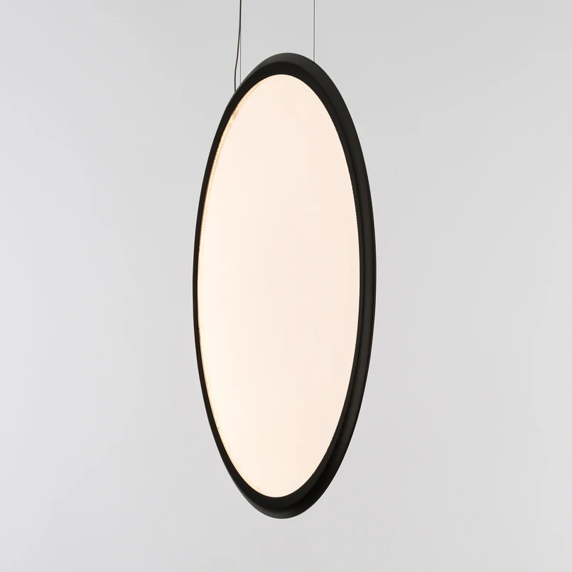 Discovery Vertical consists of an aluminum ring equipped with an LED light strip and a plastic diffuser. This composition creates a special lighting effect, as the light from the LEDs is emitted softly and brightly into the environment by the diffuser. A micro-engraving in the diffuser itself ensures a uniform distribution of light.
