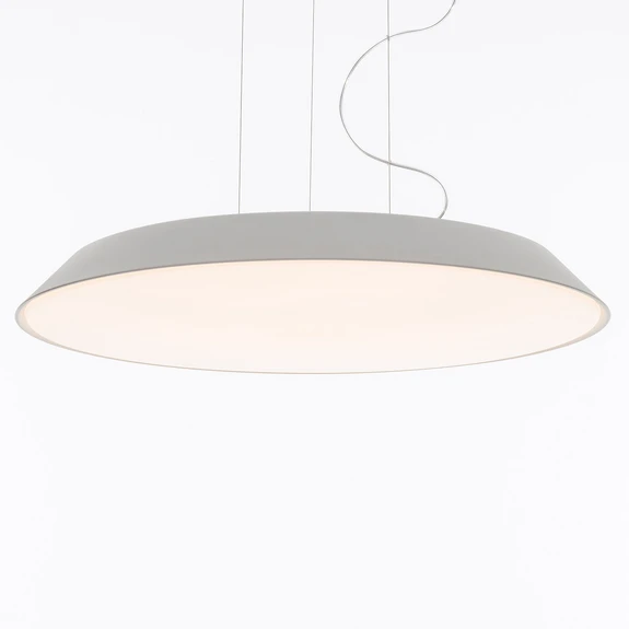 Modern LED pendant light Febe - neutral colour scheme and wide-area light The LED pendant light Febe is made of high-quality plastic with a flawless finish and impresses with its direct, effective light emission, which is wide and soft due to the width and matt finish of the cover. The colours in the surroundings are reproduced very faithfully and the warm white light colour supports a pleasant ambience. Febe is ideal for illuminating a large table, for example, and can be combined with many furnishing concepts thanks to its understated, timeless design - externally dimmable (push dim) The concept for the Febe series originates from Ernesto Gismondi, the founder of the Italian lighting manufacturer Artemide, which was founded in 1960. The company shaped the philosophy of light tailored to human needs. Some of the lights are considered design icons and are featured in modern art exhibitions.
