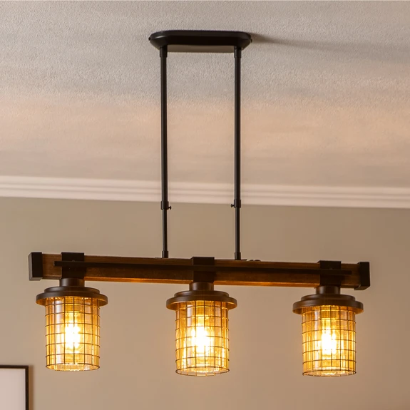 AV-4216-3EY pendant light: harmonious combination of metal, wood and glass