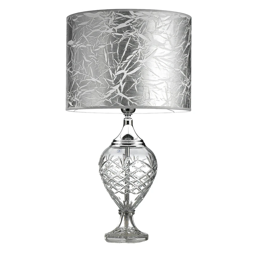 The elegantly designed Belle Epoque table lamp, whose beautiful base is made of clear, polished glass, is very decorative. The upper end of the bass is made of glossy, chrome-plated metal. The lampshade of the Belle Epoque table lamp is also a special feature, as it is decorated in a beautiful design. The Belle Epoque table lamp is switched on and off using the switch integrated into the cable. Made in Italy - the exquisite Belle Epoque table lamp is a premium product from a renowned Italian lighting manufacturer. It is handmade from high quality materials in Italy.