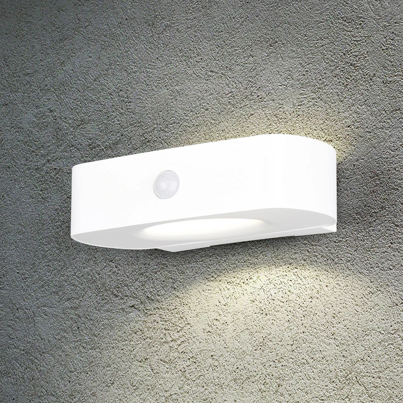 Bilbao solar wall light, white, height 6 cm, sensor, up/down