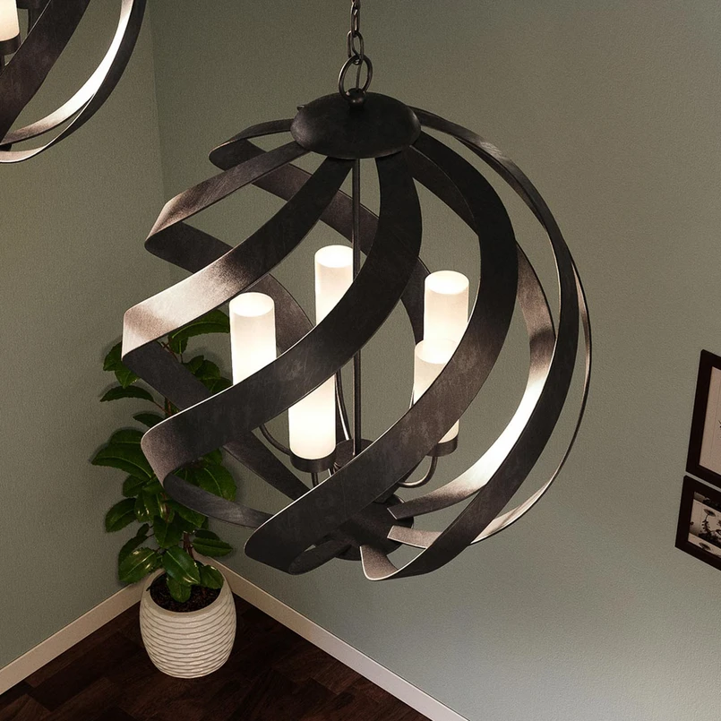 Blacksmith outdoor hanging light, Ø 66 cm, black, 5-bulb