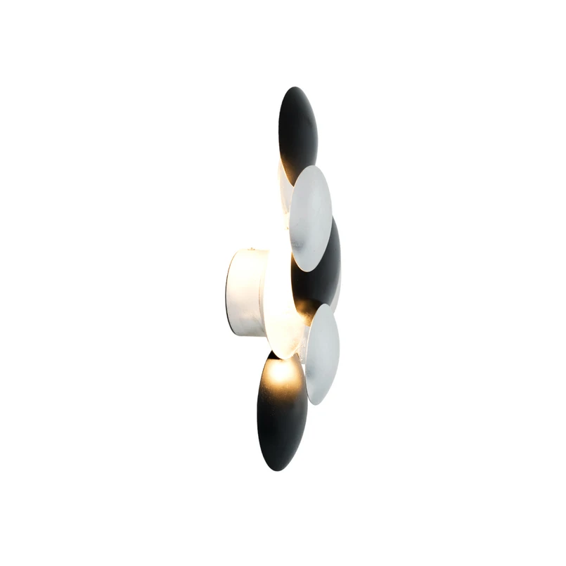Extravagantly designed LED wall lamp Bolladaria The LED wall lamp Bolladaria enriches every room not only as a light source but also as a decorative furnishing element. It consists of eight hemispheres made of iron, which - starting from the round wall mount and overlapping each other - stage each other. Concealed by the hemispheres are three warm white LED light sources that create an indirect light effect. Bolladaria can also be used to illuminate the ceiling, and the brightness can be adjusted via an external dimmer.