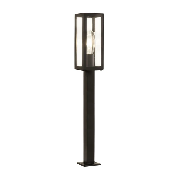 With this contemporary, but due to its simple design also timeless light source for outdoor use, property paths of all kinds can be effectively and safely illuminated. The black painted stainless steel frame is complemented by clear glasses that radiate the light of the inserted lamp to all sides, creating an ambient illumination with a large radius. Whether on the path to the house or on the driveway to the garage, the path light Box will provide bright and comfortable illumination in any place.