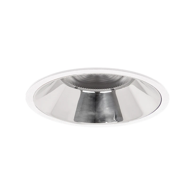 Apollo Maxi LED recessed light, round, smooth reflector The Apollo LED recessed light range can fulfil a wide variety of lighting tasks, from homogeneous illumination to setting precise accents, thanks to a wide range of models. Apollo is a perfect lighting tool for electricians, planners and designers for endless applications, such as reception areas, corridors, offices, conference rooms, shops or museums. The downlight meets all standards and has a high system efficiency. It is made of aluminium and has a smooth reflector and a transparent plastic cover. Thanks to installation springs, it can be mounted in the ceiling without tools. The silver, smooth reflector with rotationally symmetrical narrow-wide beam light distribution ensures high luminous efficiency and the transparent cover distributes the light optimally - particularly good colour rendering - colour rendering index CRI > 90 - service life L80/B10 at 25 °C: 50.000 h, service life L80/B50 at 25 °C: 50,000 h - housing material: aluminium / glass / plastic - permissible ambient temperature (ta): -20 °C - +25 °C - with electronic ballast, switchable. not dimmable