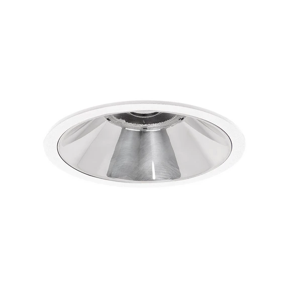 Apollo Midi LED recessed spotlight, smooth reflector, round Apollo Midi is a round recessed downlight from the Apollo series by BRUMBERG. It is made of aluminium and has a smooth, shiny silver reflector with rotationally symmetrical deep-wide beam light distribution and a transparent plastic cover to ensure high luminous efficiency and optimum light distribution. It can be installed in the ceiling without tools thanks to the installation springs. Like all downlights in the Apollo range, Apollo Midi is ideal for commercial areas such as corridors, reception areas, conference rooms, shops, museums etc. as well as for use in living spaces. The downlights in the Apollo range are the perfect lighting tool for electricians, planners and designers, with which a wide range of lighting tasks can be fulfilled thanks to the large variety of models - particularly good colour rendering - colour rendering index CRI > 90 - service life L80/B10 at 25 °C: 50.000 h, service life L80/B50 at 25 °C: 50,000 h - housing material: aluminium / glass / plastic - permissible ambient temperature (ta): -20 °C - +25 °C - with electronic ballast, switchable (not dimmable)