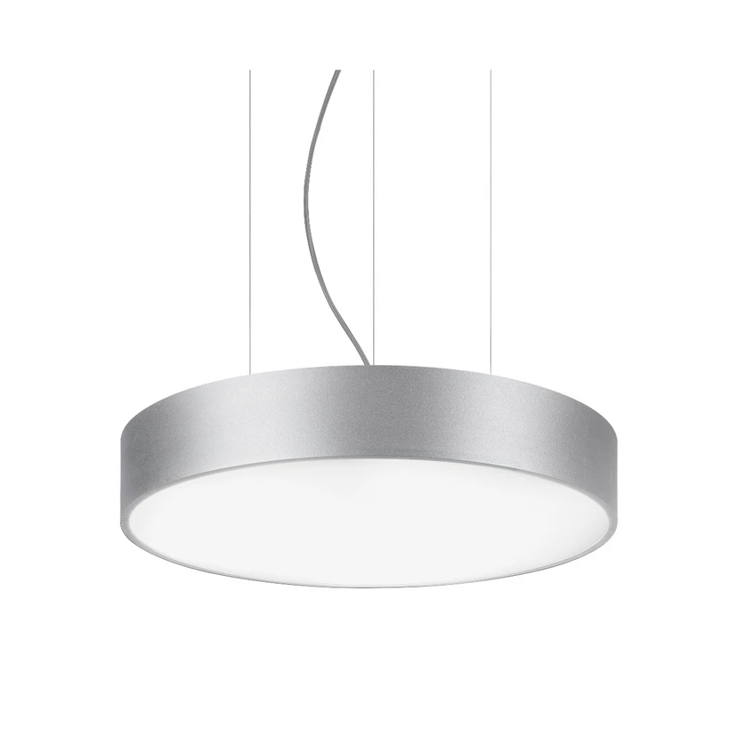 Biro Circle LED pendant light, diameter 60cm, DALI ballast Biro Circle is a round LED pendant light with a flat aluminium shade that is closed at the bottom with an opal white plastic cover for optimum light distribution. The luminaire is suspended directly from the ceiling on three steel cables, which can be shortened and are very discreet, so that the lampshade of the Biro Circle pendant light almost appears to float - with rotationally symmetrical deep-wide beam light distribution - general colour rendering index CRI > 80 - service life L70/B50 at 25 °C: 50.000 h, service life L80/B50 at 25 °C: 50,000 h - housing material: aluminium / steel / plastic - permissible ambient temperature (ta): -20 °C - +25 °C - with electronic ballast, DALI dimmable