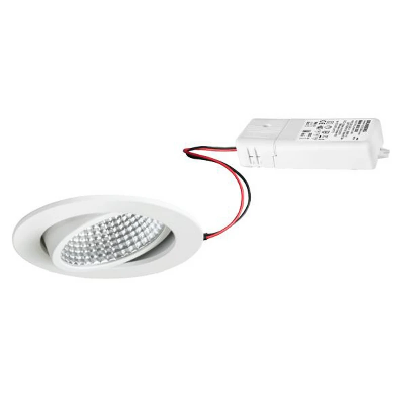 Kerby-R LED recessed spotlight with dimmable driver The Kerby-R round LED recessed spotlight is dimmable with an external phase cut-off dimmer. Tool-free ceiling installation is possible by means of recessed springs. The reflector is silver with rotationally symmetrical deep-wide light distribution. Optimum light distribution thanks to a glass cover. - Permissible ambient temperature (ta): -20 °C - 25 °C - With electronic control gear, phase-section dimmable
