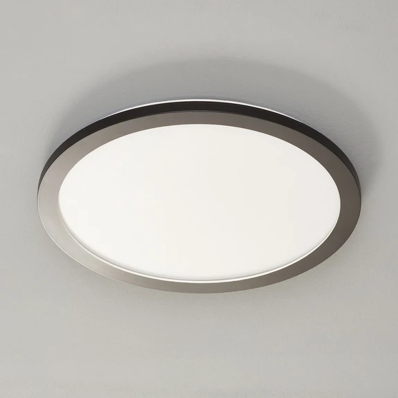 The LED ceiling light Camillus with the black frame can also be mounted on the wall. With the normal light switch, the light can be dimmed in three different brightness levels. Due to the protection class IP44 the LED ceiling lamp Camillus is also suitable for the bathroom. The warm white light illuminates the room evenly.