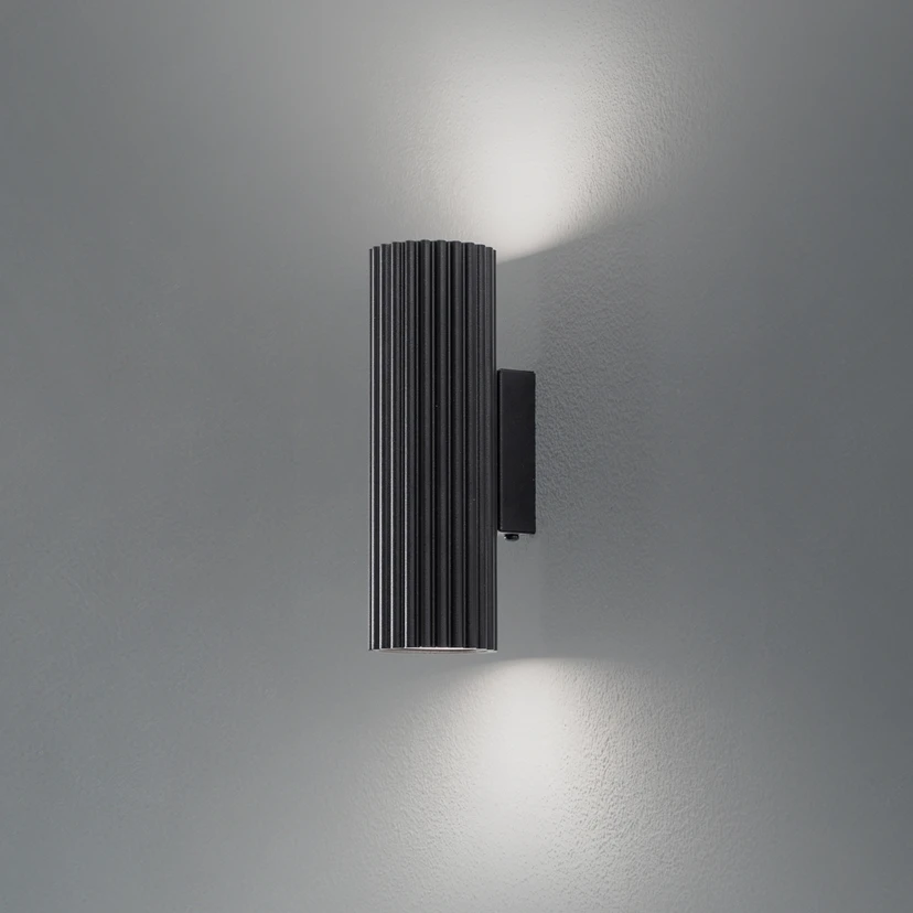 Black Karbon wall light The Karbon wall light presents itself as a stylish lighting solution that not only impresses with its modern design in elegant black, but also with its versatile application options. Made from high-quality aluminium and produced in Europe, this light represents quality and local craftsmanship. The 2-bulb Karbon wall light is an asset to any living room, dining room or bedroom, creating an atmosphere that can be both cosy and stimulating - externally dimmable