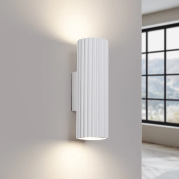2-bulb Karbon wall light: elegance meets functionality in white The Karbon wall light is a stylish lighting solution that not only impresses with its modern design in neutral white, but also with its versatility. Made from high-quality aluminium and produced in Europe, this light represents quality and local craftsmanship. The 2-bulb Karbon wall light is an asset to any living room, dining room or bedroom, creating an atmosphere that can be both cosy and stimulating - externally dimmable