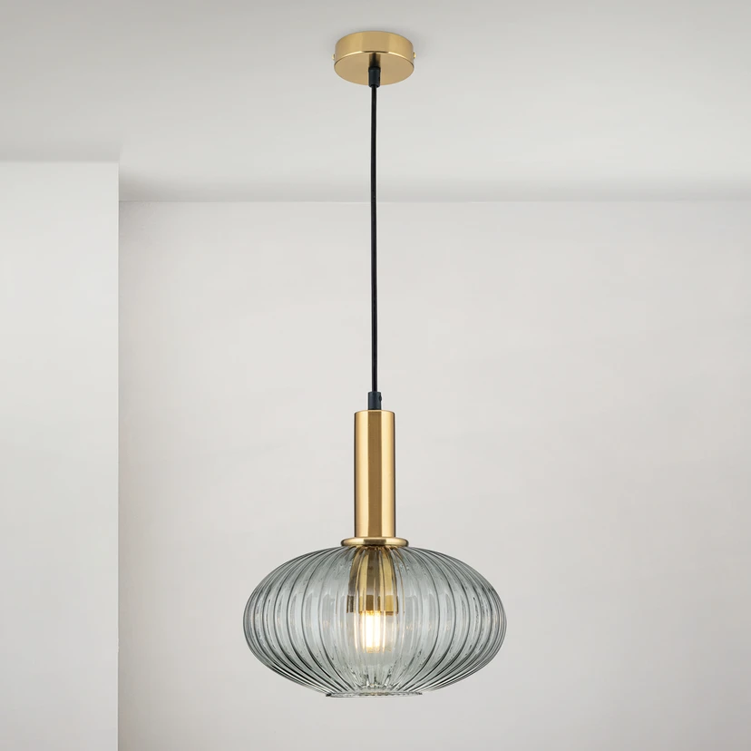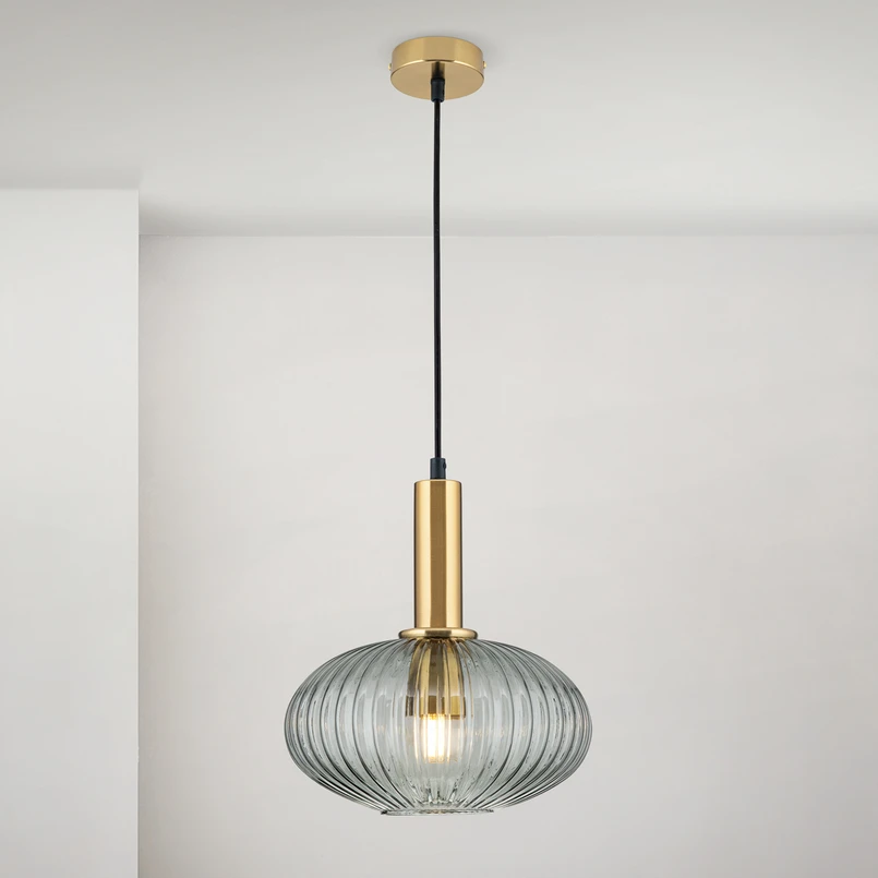 Carneval pendant light, antique brass/smoke grey, Ø 25 cm, glass
