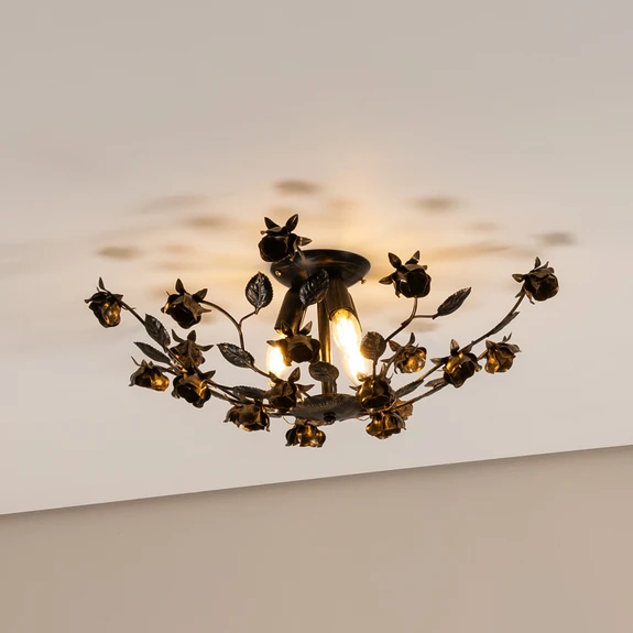 The Carolina ceiling light impresses with its Florentine style and bronze-coloured surface, which gives every room a touch of class. Made of iron, this 3-bulb light offers a robust and durable construction that is ideal for living rooms, hallways and bedrooms. The option of dimmability via an external dimmer allows flexible adjustment of the light intensity to create the desired atmosphere.