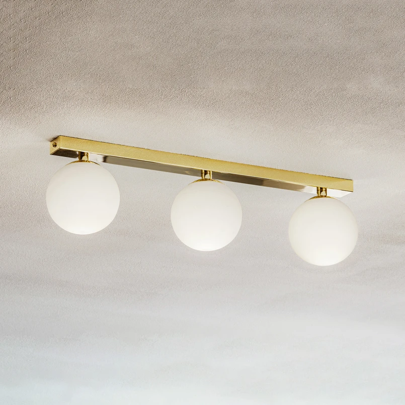 Ceiling lamp Fatis opal glass/brass 3-bulb long