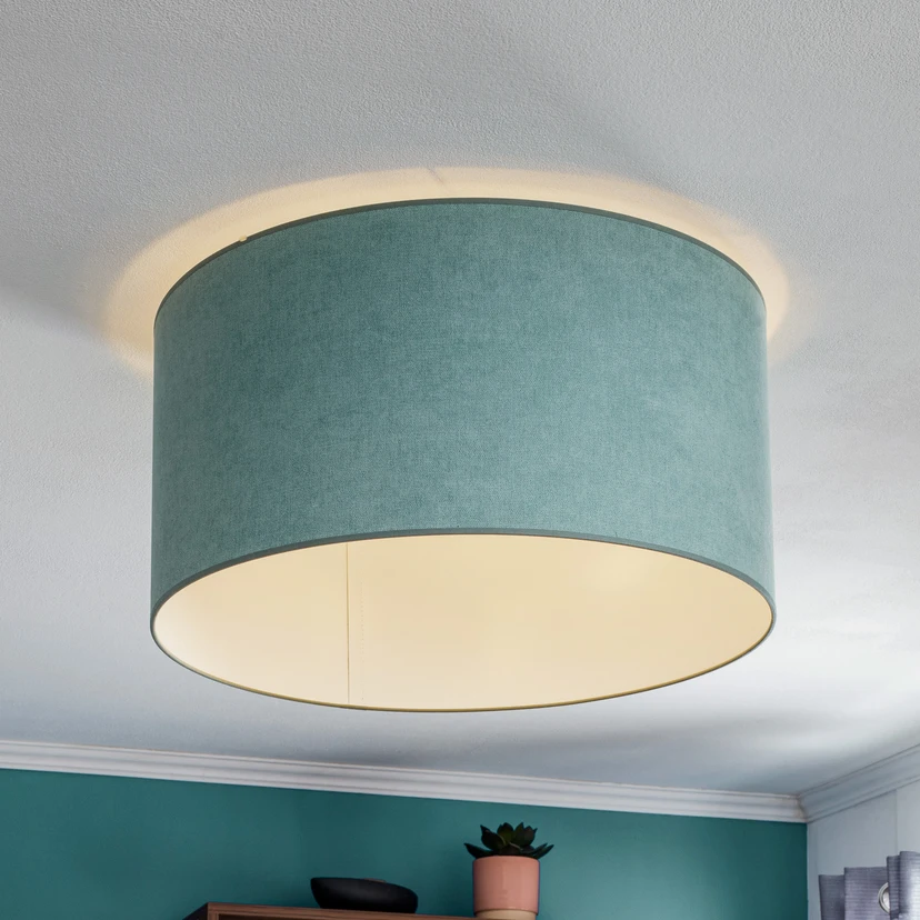 The Pastel Roller ceiling lamp (Ø 60 cm) in mint green combines youthful living with a touch of elegance. Made from high-quality fabric, this lamp brings a soft and calming atmosphere to various living areas such as the living room, hallway, bedroom and dining room. The harmonious colour combination of mint green and white gives every room a fresh and modern touch.