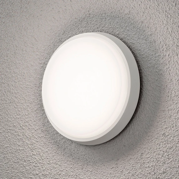 The Cesena LED outdoor wall lamp consists of a large, round polycarbonate shade and an aluminium wall bracket. Equipped with energy-efficient LEDs, it provides all-round atmospheric illumination of the surroundings. Cesena is suitable, for example, for lighting the entrance area, but it can also be used as a ceiling luminaire in covered outdoor areas, for example in a carport or in the area of a covered terrace.
