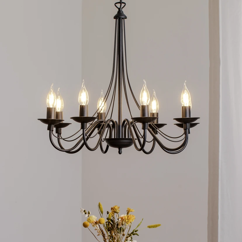 The Rosa chandelier captivates with its sophisticated combination of black metal and an elegant design that adds a touch of style to any room. With its eight light arms, it provides even and impressive light distribution, creating a stylish atmosphere in the dining room, kitchen or living room. The high-quality workmanship and timeless design make this chandelier a long-lasting companion in any home.