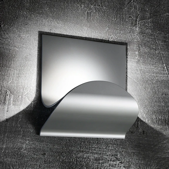 Elegantly curved Incontro LED wall light The Incontro LED wall light consists of two thin metal plates that are rectangular and rounded on one side. With the rounded side, the two plates lie against each other and merge into a single unit. The plates are curved in such a way that when they are mounted on the wall, the rounded sides where they join together protrude into the room and form the shape of a wave in profile. The LED unit is mounted on the side of the wave that is curved towards the wall so that it remains hidden from the viewer, casting its light against the luminaire base and the wall. The resulting cone of light offers a unique image and the indirect light creates a cosy and pleasant atmosphere in the room. The LED light can be mounted in all directions and even on the ceiling to enhance every corner of the house with its beautiful glow.