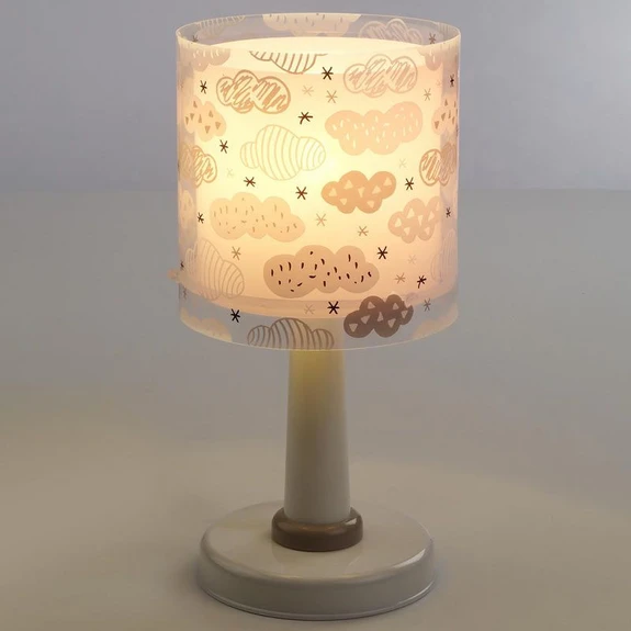 The pink Clouds table lamp provides dignified children's room lighting. The table lamp consists of two lampshades lying one above the other. The outer, transparent shade is printed with numerous clouds and stars, so that the pink design of the inner shade shimmers through. In a lovingly furnished children's room with bright colours, the Clouds table lamp creates a cosy atmosphere. Especially in the evening the light can be a great help for reading, cuddling and falling asleep. A bedside cabinet or chest of drawers standing next to the bed is a suitable place to set it up. The childlike design pleases children up to school age, so that the Clouds table lamp can be used for a long time.