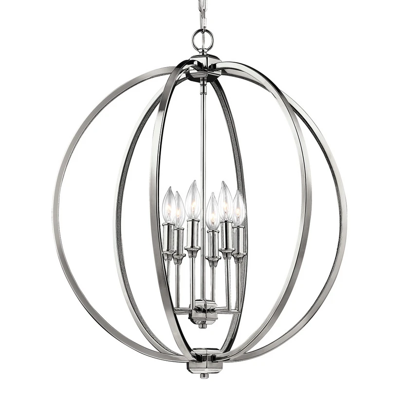 Six-bulb hanging lamp Corinne - spherical with a polished nickel finish