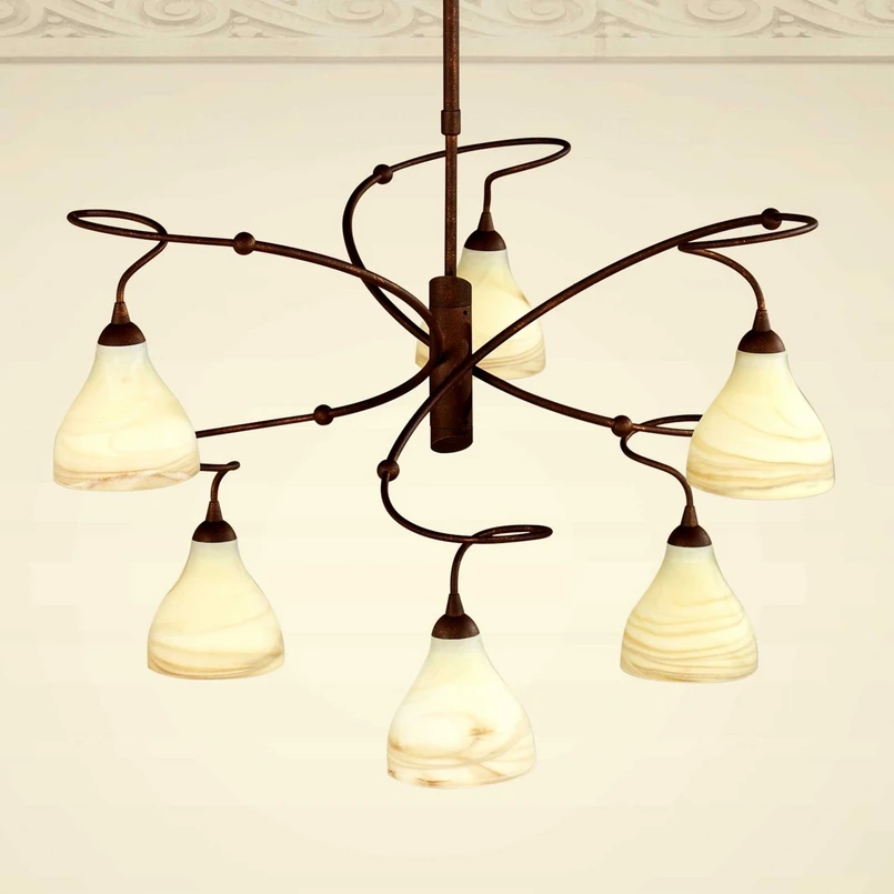Mattia pendant lamp: pleasant colour combination The Mattia pendant lamp convinces with cream-coloured satin glass shades and a frame made of curved elements in dark brown. This colour combination harmonises with each other and the lampshades also have a wipe-clean look, which makes the luminaire an eye-catcher and has a special effect.