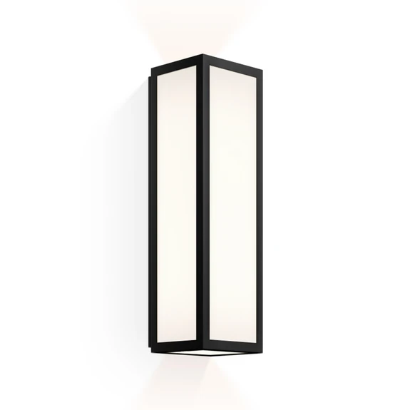 Bauhaus 1 N LED wall light as a tall cuboid with all-round radiant light The Bauhaus 1 N LED wall light consists of narrow steel struts and opal acrylic surfaces that form a tall cuboid. With its design and combination of materials, the light harmonises perfectly with modern living areas. Here, Bauhaus 1 N is ideal for use in the hallway and - thanks to its splash protection - in the bathroom to create pleasant general lighting with the light emitted upwards, downwards, to both sides and from the front. The light can be externally adjusted in brightness via a phase cut-off dimmer and is suitable for mounting on the wall or ceiling.