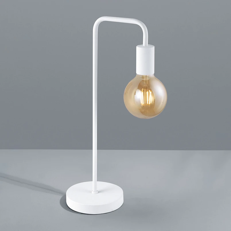 Purist Diallo table lamp made of metal The Diallo table lamp is made of matt lacquered metal with a very minimalist design. A round base, a delicate arm and an E27 socket - that's all this table lamp consists of. The look of this table lamp can be changed depending on the choice of bulb. Globe bulbs, rustic lamps or traditional light bulbs with clear or slightly tinted Glas and filament optics look very attractive. Diallo is a table lamp that can be used in conjunction with a modern furnishing style as well as in combination with a Landhaus or Scandinavian style. It is equipped with a switch in the supply cable.