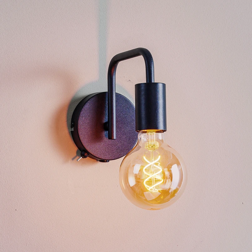 Diallo wall light made of metal in a minimalist Form The Diallo wall light is made of metal with a matt lacquer finish and consists solely of a round wall mount, a curved bracket and a socket. This minimalist design makes it a versatile light source whose appearance can be changed enormously by the choice of bulb. The light looks very decorative with a filament-look bulb and slightly tinted or clear glass.