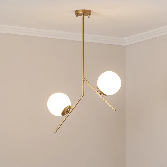 The Dolunay pendant light combines modern design with high-quality materials such as metal and glass to create a stylish ambience. The combination of golden and opal white shades gives any room an elegant touch. With its 2-bulb design, the light provides even and pleasant illumination that is suitable for both cosy and inspiring atmospheres.