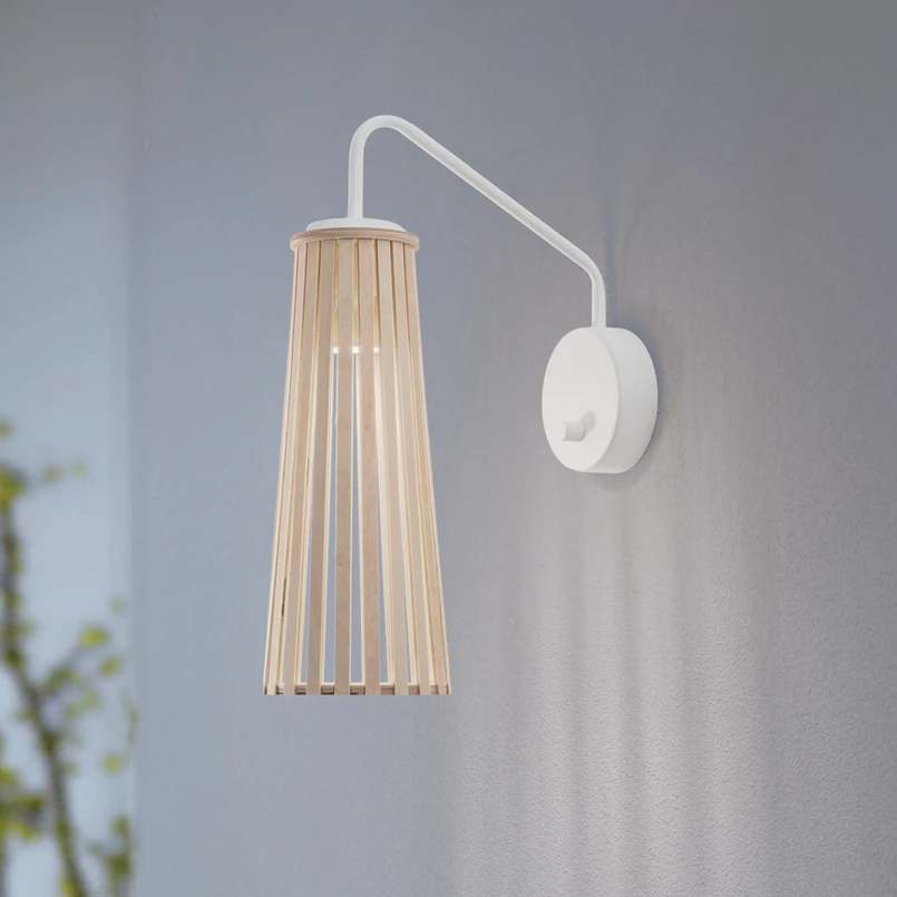 The Dover wall light combines Scandinavian design with the natural beauty of light wood and white steel. This 1-bulb light is not only a functional lighting element, but also a stylish accessory for bedrooms, living rooms or dining rooms. The combination of steel and plywood gives the light a timeless elegance, while the natural grain of the wood makes each light unique.