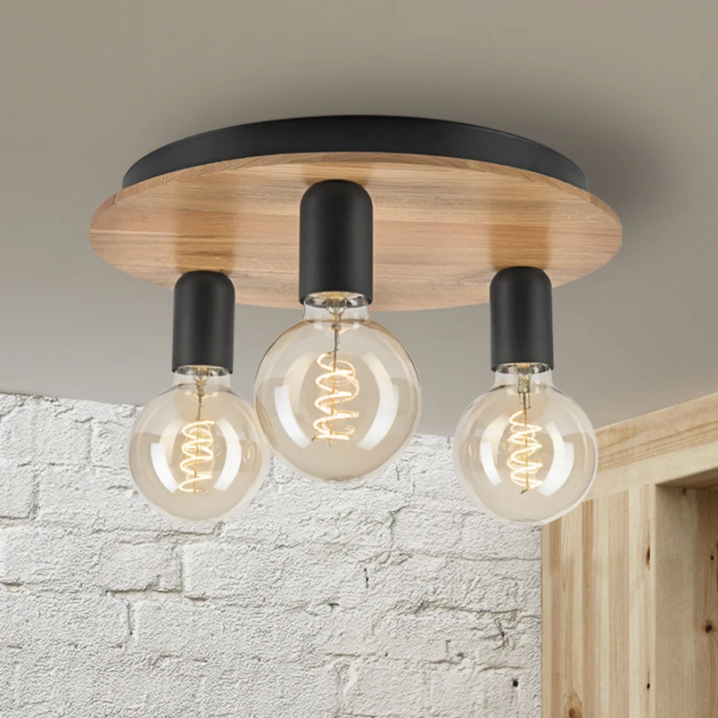 The Dusty ceiling light, made in Europe, is the ideal choice for adding a natural touch to modern living rooms and lounges. The circular shade is made of light beech wood. Below it, there are four black metal sockets. These do not have lampshades, making decorative bulbs the perfect addition.