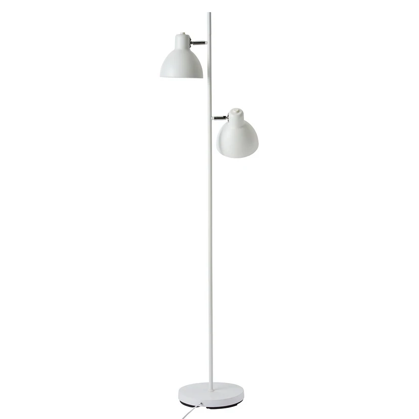 Skagen floor lamp - minimalist and functional The design of the Skagen floor lamp focusses on functionality. The simple light made of matt powder-coated metal by Dyberg Larsen, a Danish lighting label, is equipped with two wide-open metal shades arranged at different heights, which can be rotated at the joints to position the light cones as desired. There is a switch at the top of each lampshade so that both light sources can be switched separately, either individually or together, depending on the lighting requirements. Functional and simply designed according to the principle of simplicity, the Skagen floor lamp can be integrated into many environments and furnishing styles.
