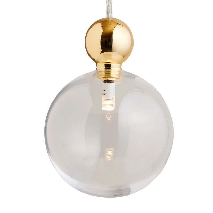 EBB & FLOW Uva L hanging light, ball gold, clear